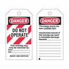 Master Lock® S4017 Safety Tag, 5-3/4 in H x 3 in W, Black/Red on White, 5/16 in Hole, 80 mil Polypropylene