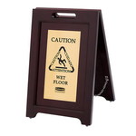 Rubbermaid® 1867507 Executive Multi-Lingual Wooden Caution Sign, 23.5" x 15" x 16.2", Brass