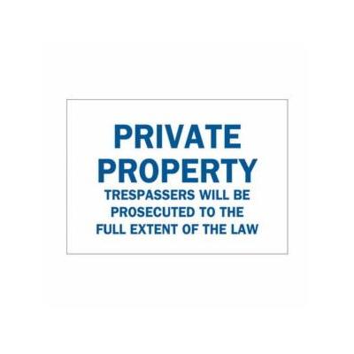Brady® Admittance Sign, Rectangle, Text Legend, PRIVATE PROPERTY TRESPASSERS WILL BE PROSECUTED TO THE FULL EXTENT OF THE LAW Legend, B555 Aluminum, Surface Mount, 10 in Height, 14 in Width, Blue on White