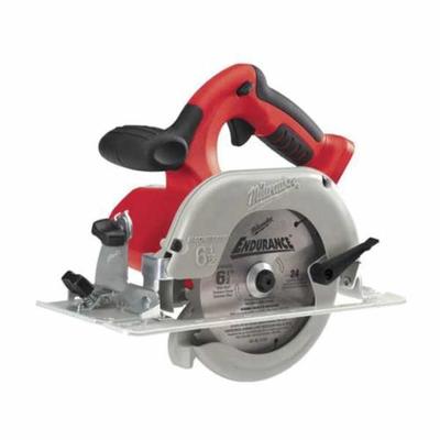 Milwaukee® Cordless Circular Saw, Series: M28™, 6-1/2 in Blade, 5/8 in, 4200 rpm, 1-9/16 in, 2-1/8 in Cutting Depth, 45 deg, 90 deg Cutting Angle, Bevel Capacity: 0 - 45 deg, Aircraft Aluminum Shoe, 28 V, Li-Ion Battery Type, 3 Ah Battery, Plastic Housing, Non-Slip, Soft Grip Handle, 12-3/4 in L