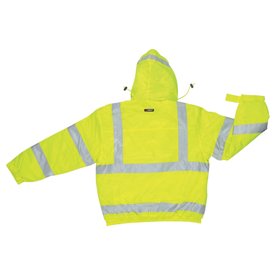 River City BMRCL3LXL 1-Piece High Visibility Rain Jacket With Hide Away Drawstring Hood, XL, 50 in Chest x 28 in L