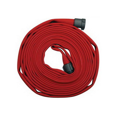 Dixon Single Jacket Fire Hose, Single Jacket Fire Hose Item, 800 psi Burst Pressure, Red, 1-3/4" Coupling Bowl, Aluminum Coupling, 1-1/2" Hose ID, 50 ft. Hose, Polyester Jacket, EPDM Rubber Lining, Test Pressure: 250 psi (Service), 500 psi (Proof), NST (NH) Thread, 225 psi, 500 psi Working Pressure